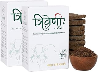 त्रिवेणी Triveni Organics Premium Dhooni Kanda For Pujan & Religious Purpose With Hawan Samagri, Camphor Tablets, Desi Gobar ke Uple for Hawan:- Cow Dung Cake (Set of 11 Piece) – Pack of 2