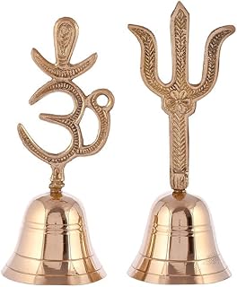 AC ANAND CRAFTS Brass Om & Trishul Symbol Pooja Bell- Puja Handbell- Home and Temple Prayer Bell Musical Instruments for Puja and Gift Mandir Ghanti (Combo Pack of OM & Trishul)