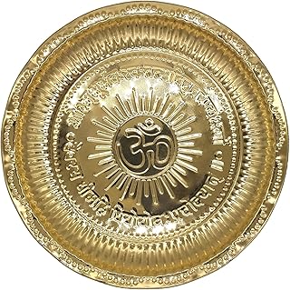 HomeBrass BellBrass Pooja Traditional God Aarti Puja Decorative Plate with OM Symbol and Gayatri Mantra Brass Naksi Plate Size -8 Home and Puja Purpose(Especially Hindu Traditional Occasions)