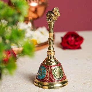 Brass Temple Bell for Home and Mandir, 5 Inches, Religious Decoration Item Ghanti for Puja Arti Prayer MENA Kari Art Bell Handmade Bells janamasthmi Pooja Bells