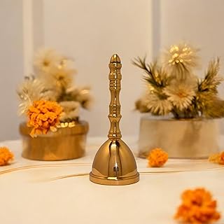 DIVYANTRA Hath Ghanti for Puja Aarti Prayer | Brass Pooja Bell for Temple Home and Office Mandir Diwali Decoration Item | Traditional Religious and Spiritual Item, 5 Inch Height, 135 GMS Copper