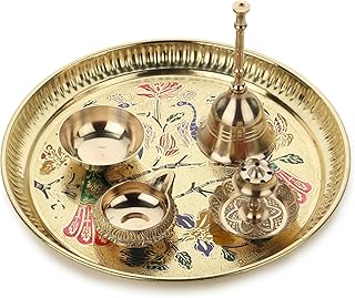 Brass BellDokchan Handcrafted Pure Brass 8inch Puja thali Set of 5 for Home Temple| Crafted Design for Divine Blessing | Perfect for Festivals and Worship