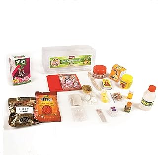 Satyanarayan Pooja KitTOTA Satyanarayan Puja Kit with 22 Essential Puja Items | Aarti Book | Diya | Gangajal | Ghee Batti and More for Home Grahshanti Health and Prosperity (Pack of 1)