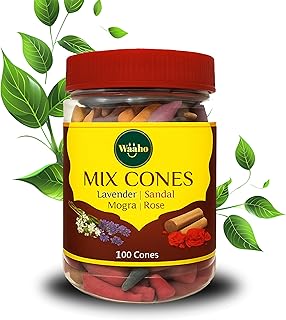 WAAHO Natural Dhoop Cones Mix – 100 Cones | Lavender Rose Sandal Mogra | Pure Long-Lasting Dhoop Cones for Pooja Meditation Home Fragrance | Pack of Jars 100 Cones for a Divine Aroma