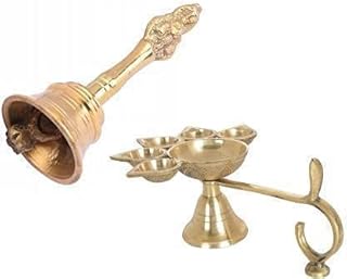 HomeBrass BellYANTRAM Vedic Product Combo of Brass Panch Mukh Diya Aarti with Bell/Ghanti | Golden | Five Face Jyoti Puja Diya Stand and ghanti with Good Effect